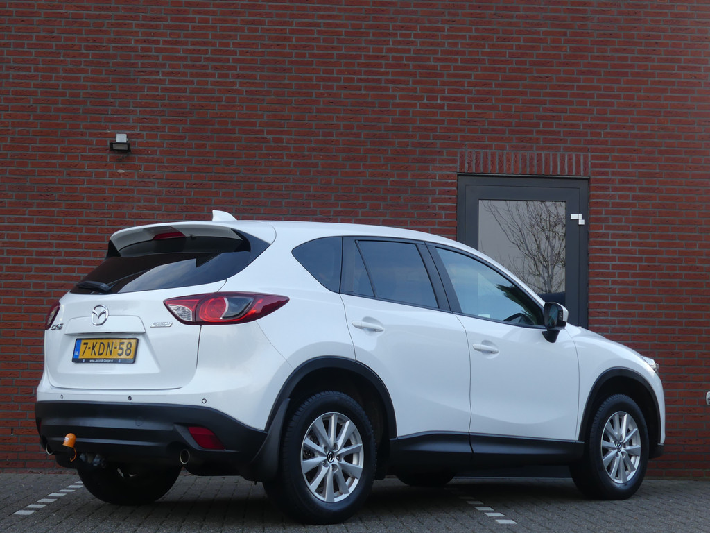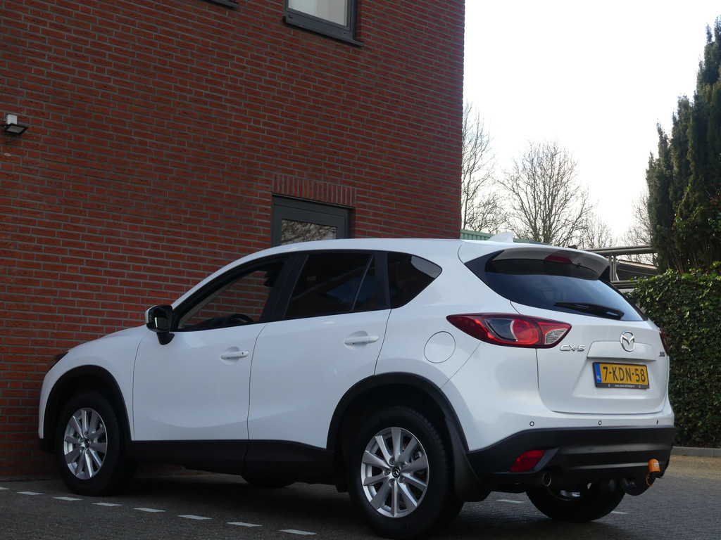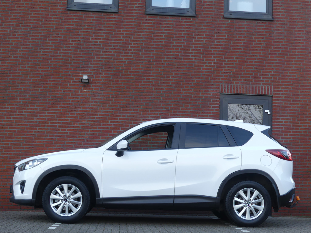 Alle technologie in de Mazda CX-5 is er op gericht om uw rit veilig en gemakkelijk te laten verlopen. Dit mooie, dealeronderhouden exemplaar uit 2013 heeft 163292 kilometer op de teller staan. Een benzinemotor en een handgeschakelde zesversnellingsbak zorgen dat u met deze SUV prima vooruitkomt. Bij de uitrusting van deze auto horen onder meer 17 inch lichtmetalen velgen, donker getint glas achter en verstelbare lendensteunen.De auto is voorzien van een trekhaak en is een uitstekende caravantrekker. U bedient het audiosysteem via knoppen op het stuur. Zo kunt u steeds uw aandacht gericht houden op de weg. Of het buiten nu warm is of koud, dankzij electronic climate control is het binnen altijd behaaglijk. Het luxeniveau in deze Mazda is niet alleen gericht op comfort, maar ook op uw veiligheid. Tal van sensoren helpen u om de omgeving in de gaten te houden. De automatisch inschakelbare verlichting zorgt dat automatisch de verlichting wordt ingeschakeld als het donker wordt, wat bijvoorbeeld in tunnels erg handig is. En de regensensor zet de ruitenwissers aan zonder dat u eraan hoeft te denken. Een constante snelheid is goed voor de ontspanning onderweg, en de cruise control zorgt ervoor. Ook automatisch dimmende binnenspiegel, lederen stuur, centrale deurvergrendeling met afstandsbediening, bagage afdekhoes, boordcomputer en lederen versnellingspook zijn aan boord.