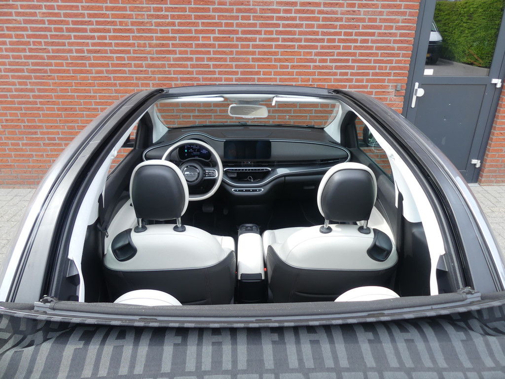 Zodra de zon zich laat zien, kunt u heerlijk genieten achter het stuur van deze cabriolet. Betrouwbaar in kwaliteit, een topper in rijprestaties en qua conditie in blakende vorm. Deze Fiat 500 C staat voor u klaar! Elke rit in deze Fiat 500 C heeft een tikje meer, dankzij het lederen interieur. Genieten van de vrijheid van cabriorijden is gemakkelijker dan ooit dankzij het elektrisch bedienbare dak. Natuurlijk behoren 17 inch lichtmetalen velgen, LED koplampen, in delen neerklapbare achterbank, LED-achterlichten en snelheidsafhankelijke stuurbekrachtiging ook tot de uitrusting van deze complete auto.Of u nu achteruit rijdt, parkeert of een smalle straat inslaat, de 360 graden camera op deze auto, mogelijk gemaakt door vier camera's, biedt een perfect beeld van uw omgeving. Adaptive cruise control houdt de ingestelde snelheid vast en houdt afstand tot het voertuig voor u. Functies activeren en storingen opsporen? Bij deze auto gaat het eenvoudig via uw smartphone. Overal en altijd. Je weet altijd waar je moet zijn, dankzij het full map navigatiesysteem. Nooit meer te warm of te koud. De automatische airconditioning zorgt altijd voor de temperatuur die u kiest. Met draadloos opladen, DAB ontvangst, regensensor, keyless entry, automatisch dimmende binnenspiegel en lederen stuur is deze Fiat helemaal compleet.