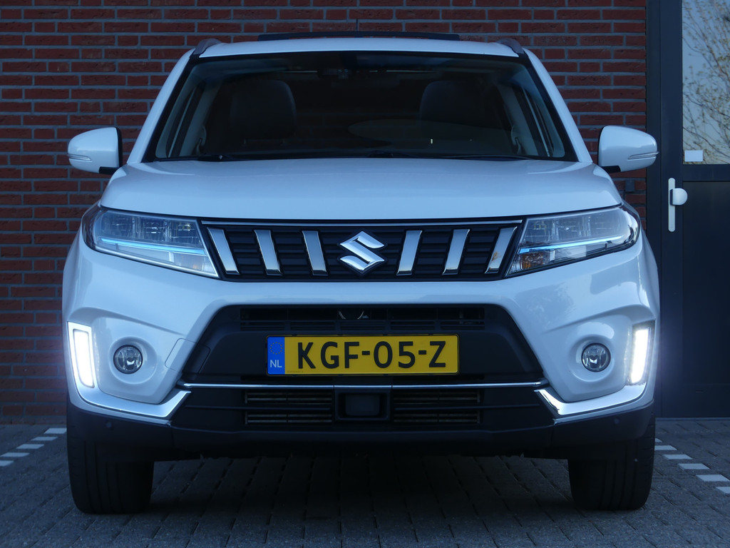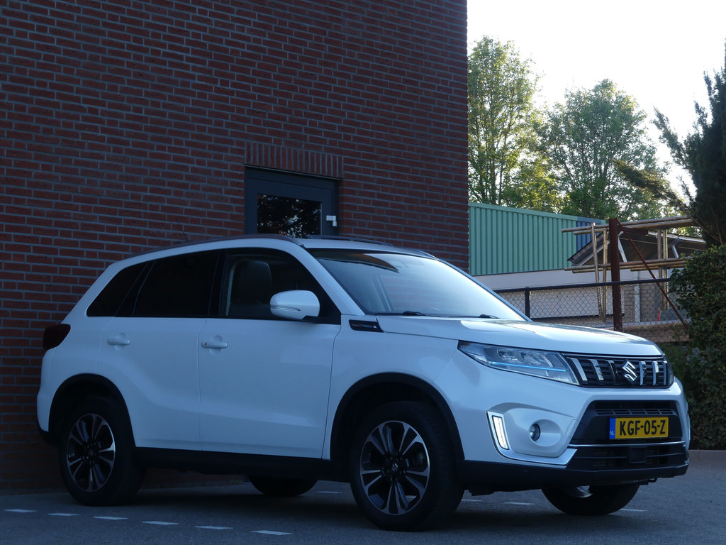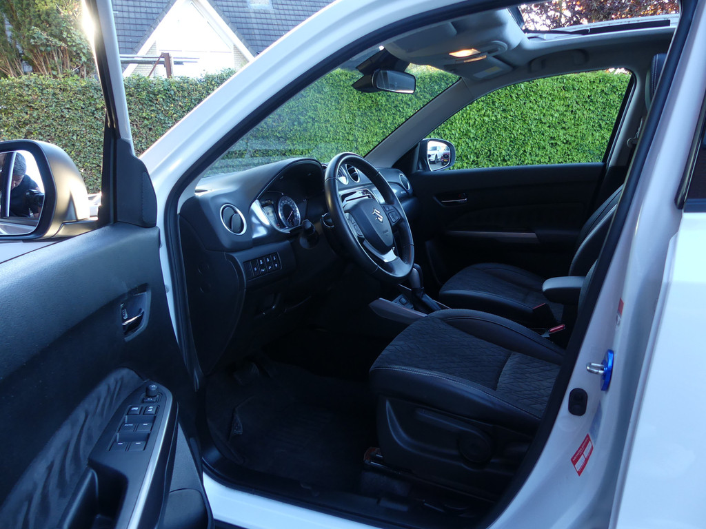 Met een auto als deze Suzuki Vitara komt u absoluut goed voor de dag. Deze dealeronderhouden auto uit 2021 heeft 66697 kilometer gereden. Twijfelt u nog tussen rijden op benzine of elektrisch? Niet nodig. Deze hybride Suzuki Vitara doet het allebei. Kou en regen maken geen indruk. Binnen zit u comfortabel dankzij de stoelverwarming. Dankzij het elektrisch bediende glazen panoramadak lijkt het of u altijd met open dak rijdt. Natuurlijk behoren 17 inch lichtmetalen velgen, LED koplampen, donker getint glas achter, in delen neerklapbare achterbank en snelheidsafhankelijke stuurbekrachtiging ook tot de uitrusting van deze complete auto.Strak inparkeren wordt een fluitje van een cent door de achteruitrijcamera. Met adaptive cruise control houdt deze auto automatisch afstand tot uw voorligger. Gemakkelijk en veilig is de bediening het audiosysteem en het full map navigatiesysteem met knoppen op het stuur. De audio-kwaliteit is geweldig, dankzij de DAB-ontvangst. Deze Suzuki Vitara is voorzien van sensoren aan de achterzijde om een achteropkomend verkeer waarschuwing te geven als de afstand tussen u en een achterligger te klein is. Tot de standaard uitrusting van deze auto hoort ook electronic climate control. Natuurlijk behoren regensensor, lederen stuur, centrale deurvergrendeling met afstandsbediening, bagage afdekhoes en boordcomputer ook tot de uitrusting van deze complete auto.